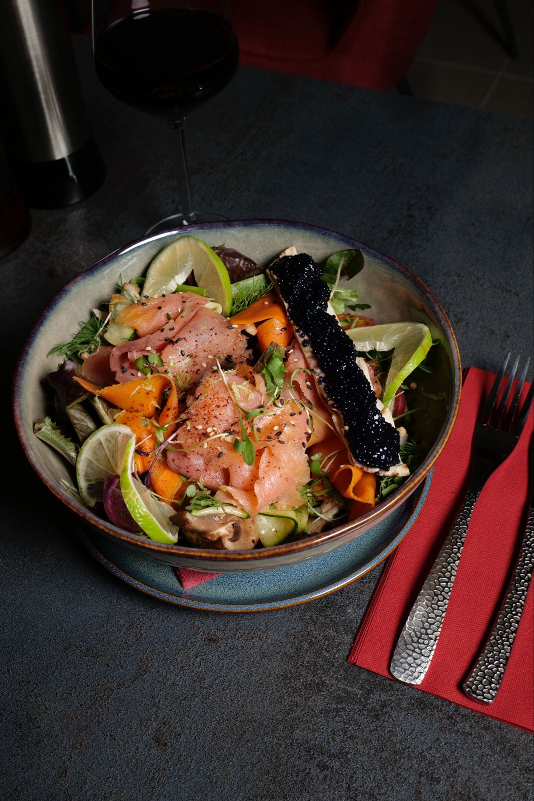 Salade Mesclum, Légumes confit, Saumon fumé